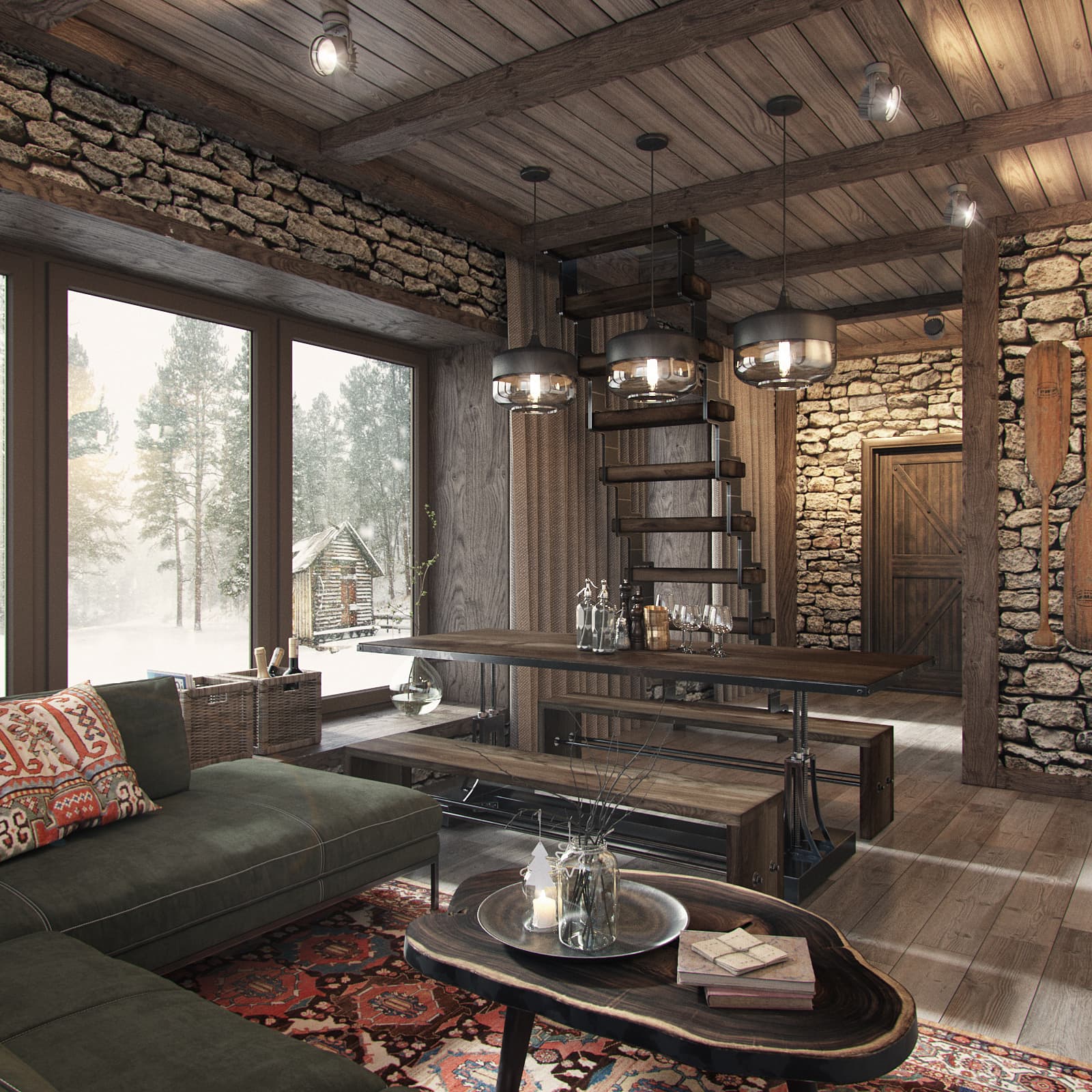 Камень: Каменные элементы, такие как мрамор, гранит или природный камень, могут добавить элегантности и прочности в интерьер комнаты отдыха. Каменные стены, полы или элементы декора создают ощущение природности и спокойствия.